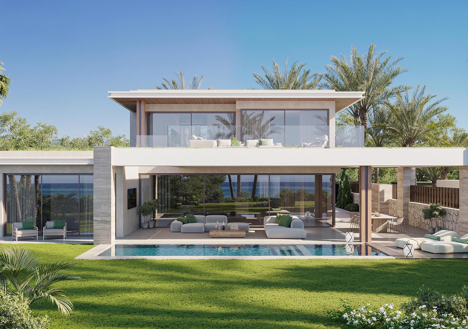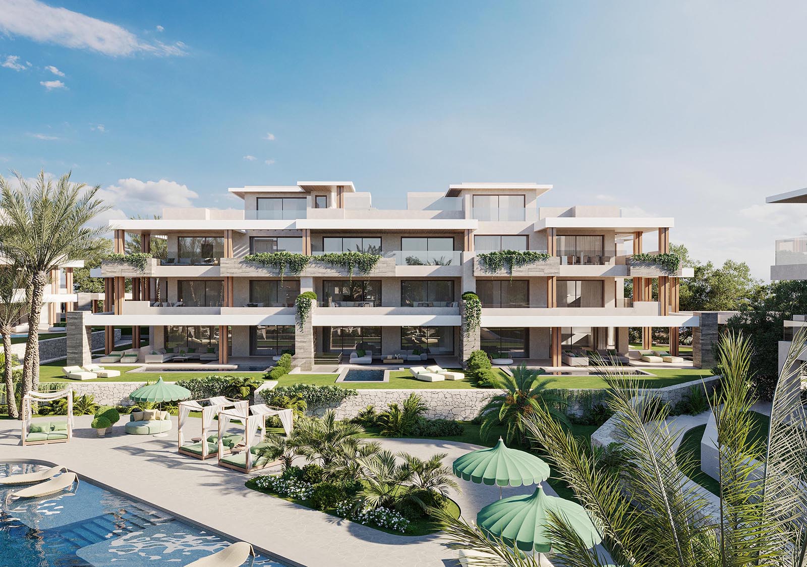 Conceived as a landmark coastal development on the Costa del Sol — occupying the last beachfront parcel available in the area. With a generously sized plot of 33,346 m², the project combines six luxurious villas on first-line sea frontage with 42 apartments and penthouses, arranged in low-rise buildings designed to maximize sea views and integrate with the surrounding natural environment. The mix between villas and apartments achieves a balanced, low-density community that preserves privacy, light, and open spaces.